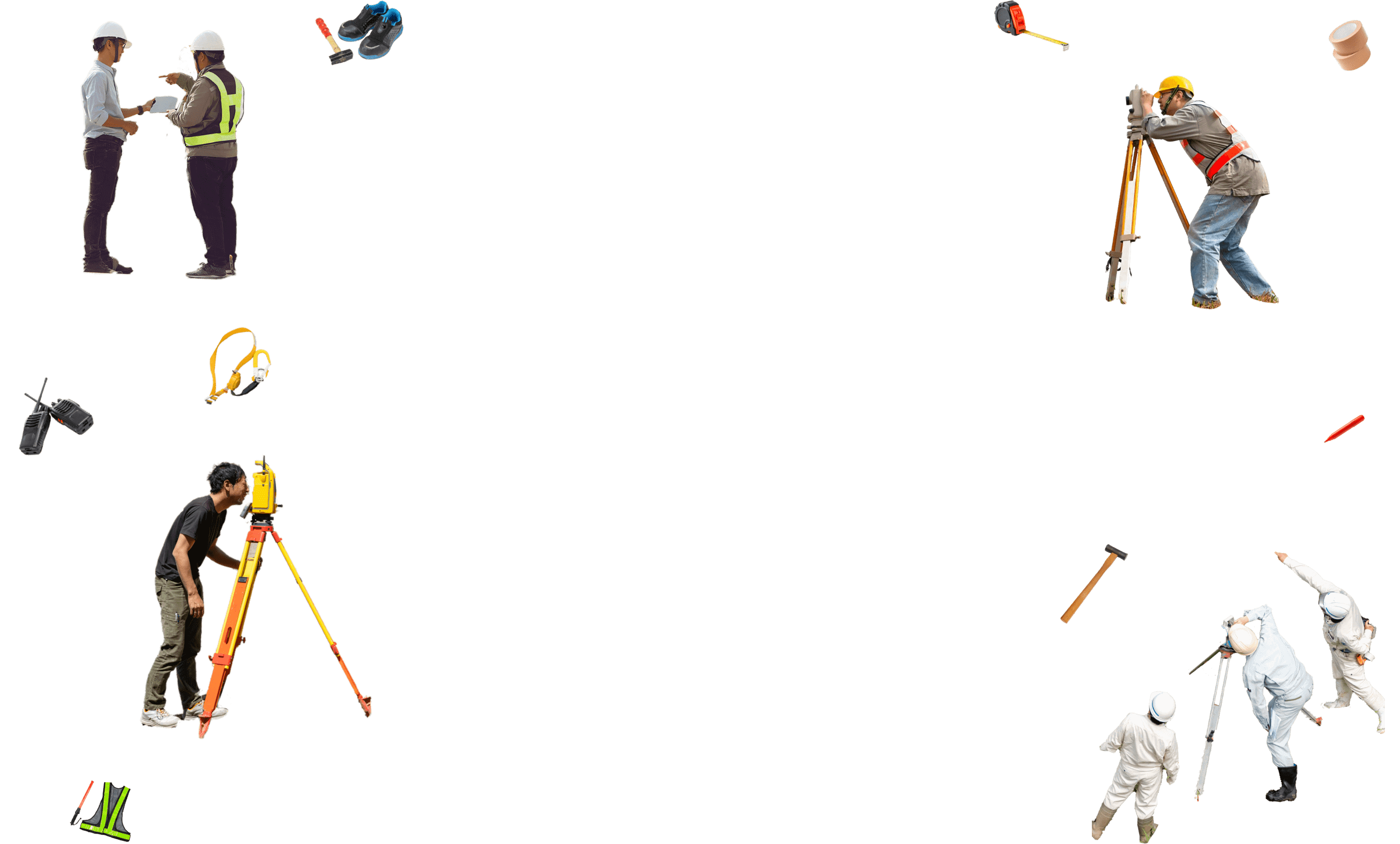 測量士は新しい住宅地の開発、道路や鉄道の建設、ホームドアの設置、災害対策としての地形分析など、これらのプロジェクトが計画どおり、かつ安全に進行するための基盤を作るのが仕事です。建造物が建つ土地の位置や面積、高さ、長さを計測し、図面を作成。その結果や図面に沿って開発事業の計画や建造物の設計がされていきます。